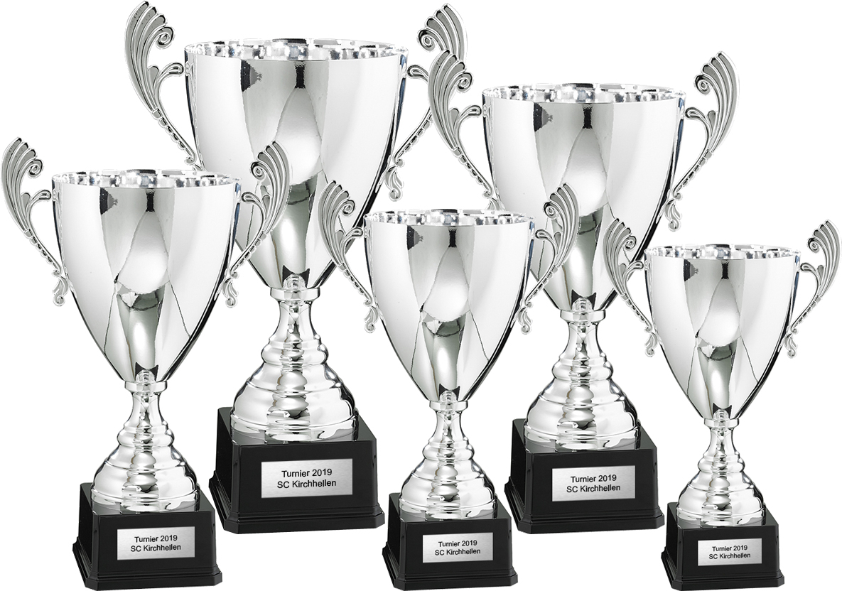 Der 5er Pokal Phoenix vereint zeitlose Eleganz mit hervorragender Verarbeitung und ist die ideale Wahl für anspruchsvolle Ehrungen. Diese edlen Henkelpokale überzeugen mit einem schlichten, silberfarbenen Design, das sowohl modern als auch klassisch wirkt. Die fünf unterschiedlichen Größen von 30 cm bis 47 cm bieten vielseitige Einsatzmöglichkeiten und machen diese Serie perfekt für jede Veranstaltung.