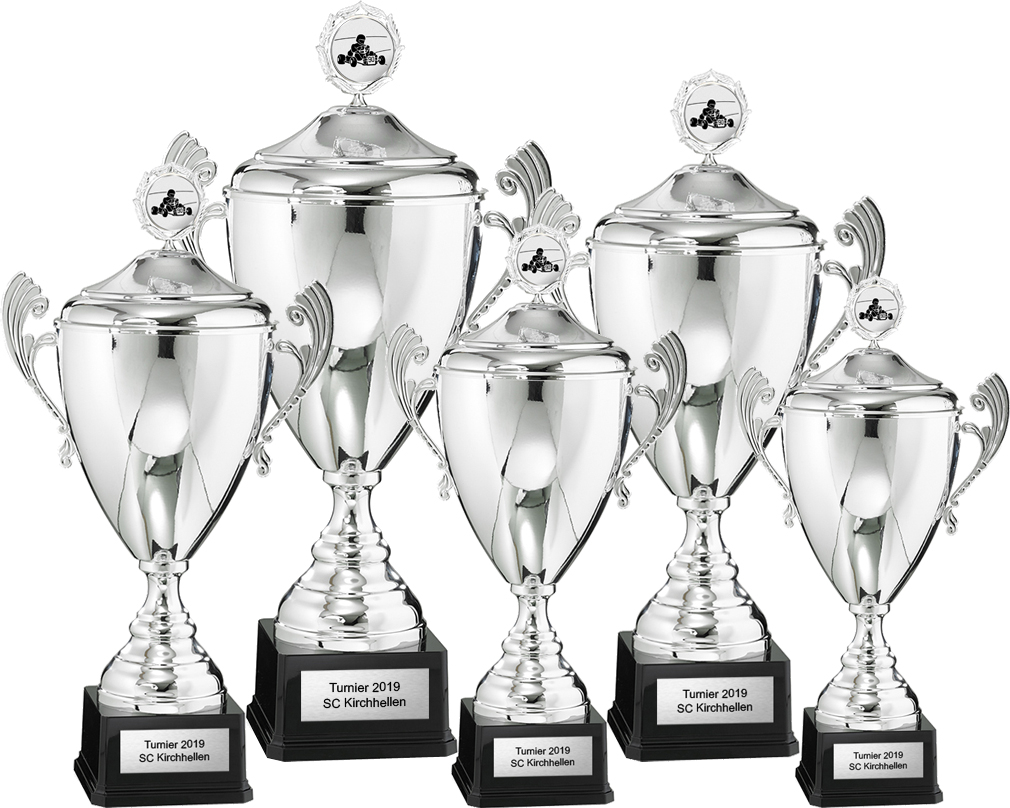 Auswahl aus 5er Metall Pokale mit Deckel Phoenix