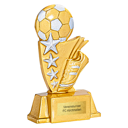 Die Fußball Trophäe Regulus kombiniert Stil und Qualität in einem goldfarbenen Design. Mit einer Höhe von 11 cm und einer stabilen Verarbeitung aus massivem Kunstharzguss bietet sie die ideale Möglichkeit, sportliche Erfolge zu würdigen. Diese Trophäe ist nicht nur ein Blickfang, sondern auch ein Symbol für Anerkennung und Motivation.