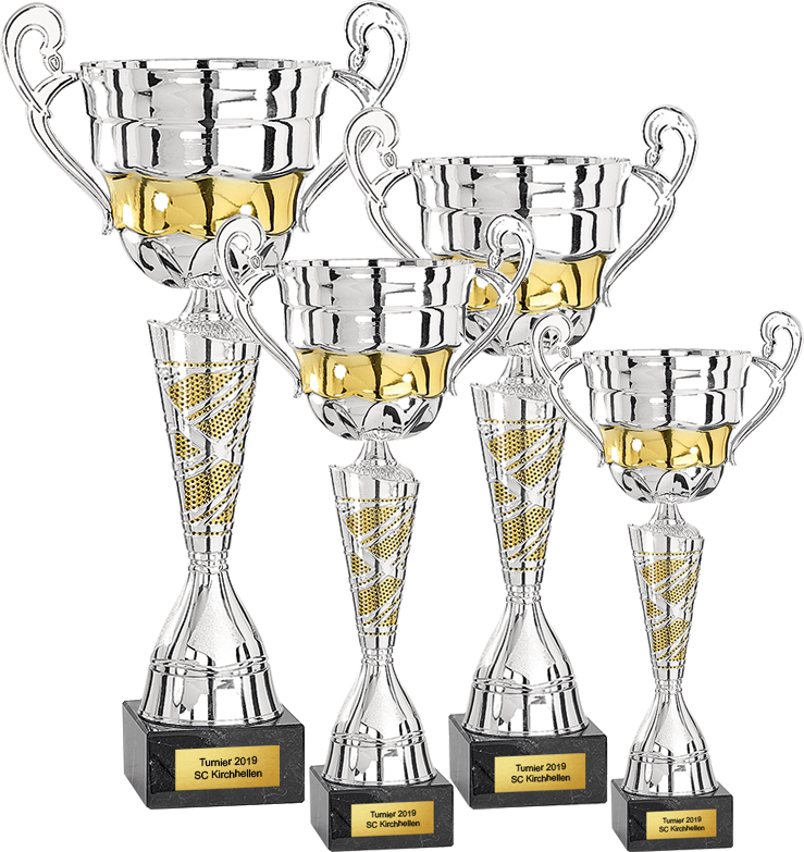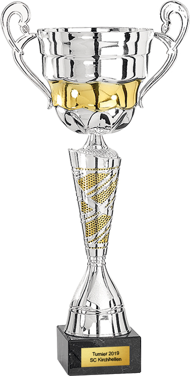 Der Pokal Telescopium 2 ist die ideale Wahl, wenn Sie nach einer Auszeichnung suchen, die Stil und Qualität perfekt kombiniert. Mit einer beeindruckenden Serie von vier Pokalen, die in Höhen von 33 cm bis 49 cm erhältlich sind, eignet sich dieser Pokal hervorragend für jede Art von Ehrung. Das elegante Bicolor-Design in Silber mit goldenen Akzenten sorgt für einen edlen Look, der jedes Event aufwertet.